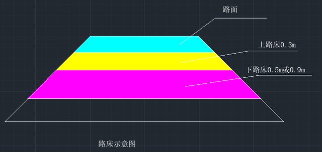上路堤:在路床以下0.7m厚度范圍內(nèi)的填方部分稱之為上路堤(結(jié)合路床示意圖,下路床以下0.7m范圍內(nèi)的天放部分稱之為上路堤)。