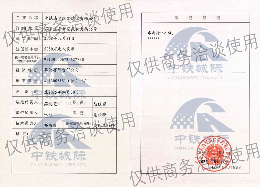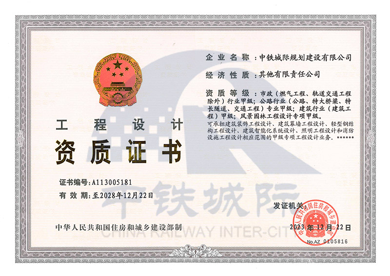• 市政行業(yè)(燃氣工程、軌道交通工程除外)工程設(shè)計甲級
